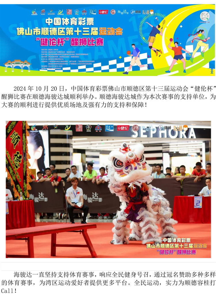 順德海駿達(dá)城大力支持區(qū)運(yùn)會(huì)醒獅賽
